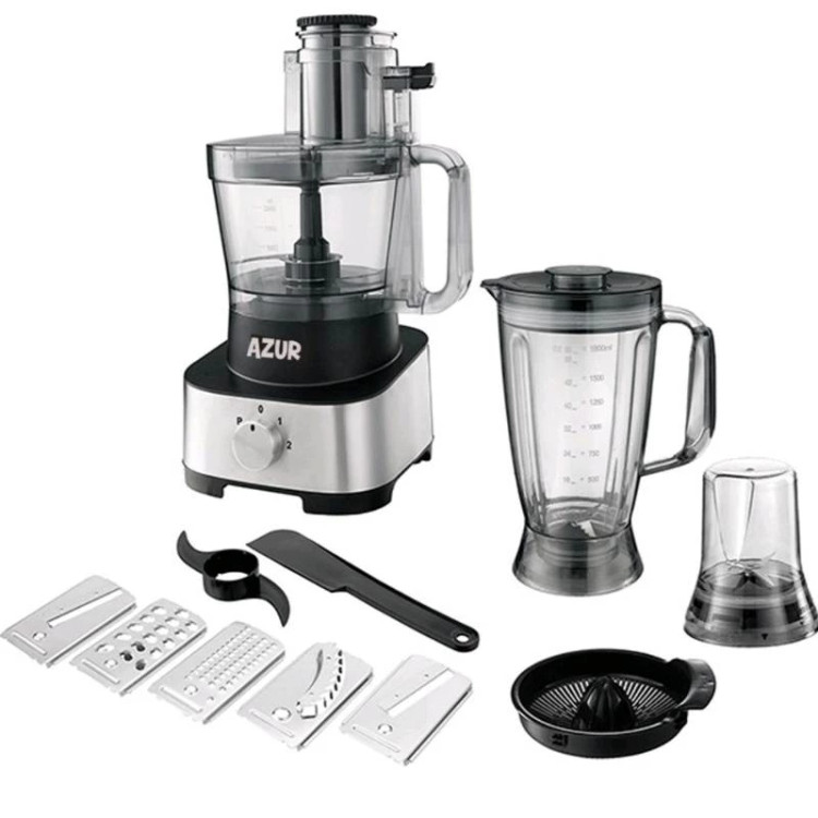 غذاساز آزور مدل AZ-271FP با توان 1000 وات با تنظیم قدرت دو حالته و قابلیت های غذاساز ، خرد کن ، آسیاب ،آب مرکبات گیری و خمیر زن ... این مدل غذاساز از 5 رنده مختلف برخوردار است و راحتی در آشپزی را برای شما به ارمغان خواهد آورد