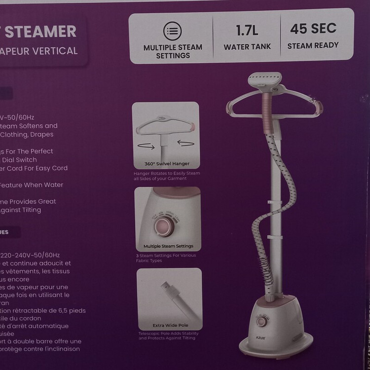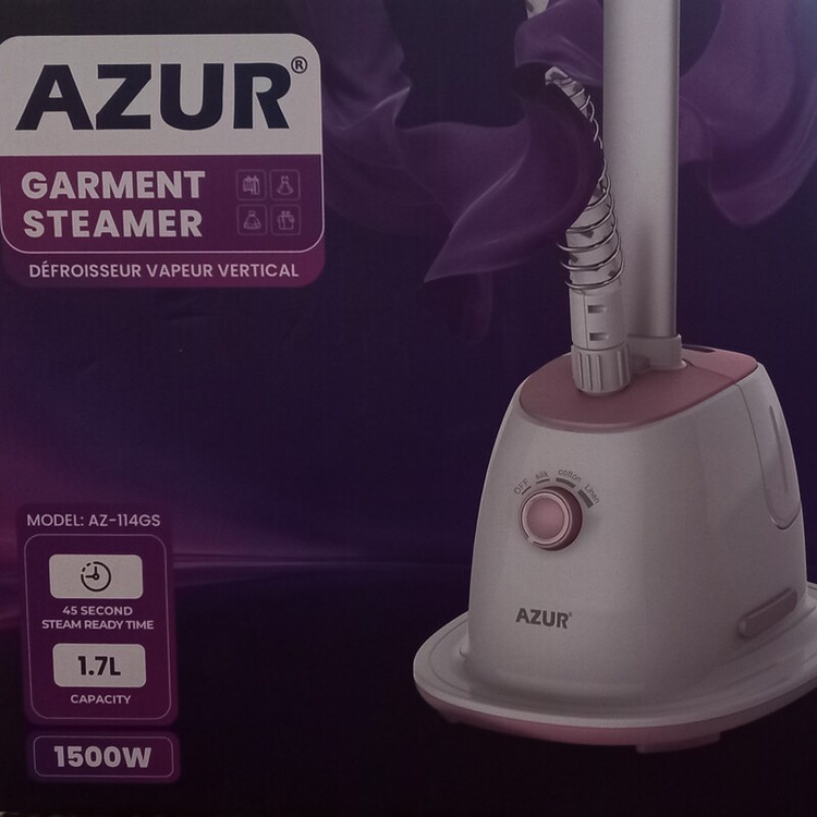 بخارگر ۱۱۴ آزور سفید رنگ آماده به کار ظرف ۴۵ ثانیه جنس کفه اولترا گلس سیستم ضد رسوب مخزن آب ۱،۷ لیتری دارای سری پرز گیر بازه طول کابل ۲ متر توان ۱۵۰۰ وات
